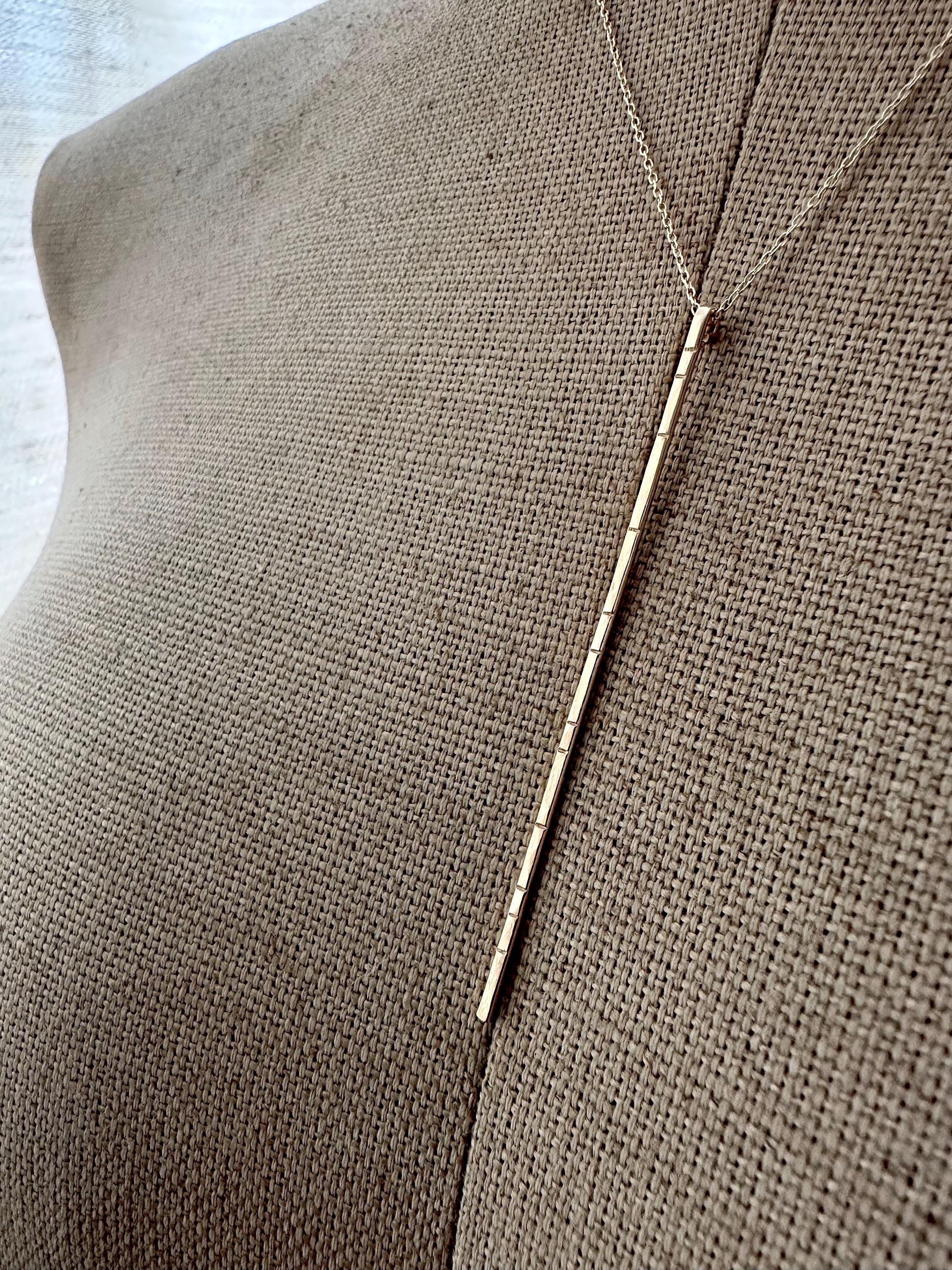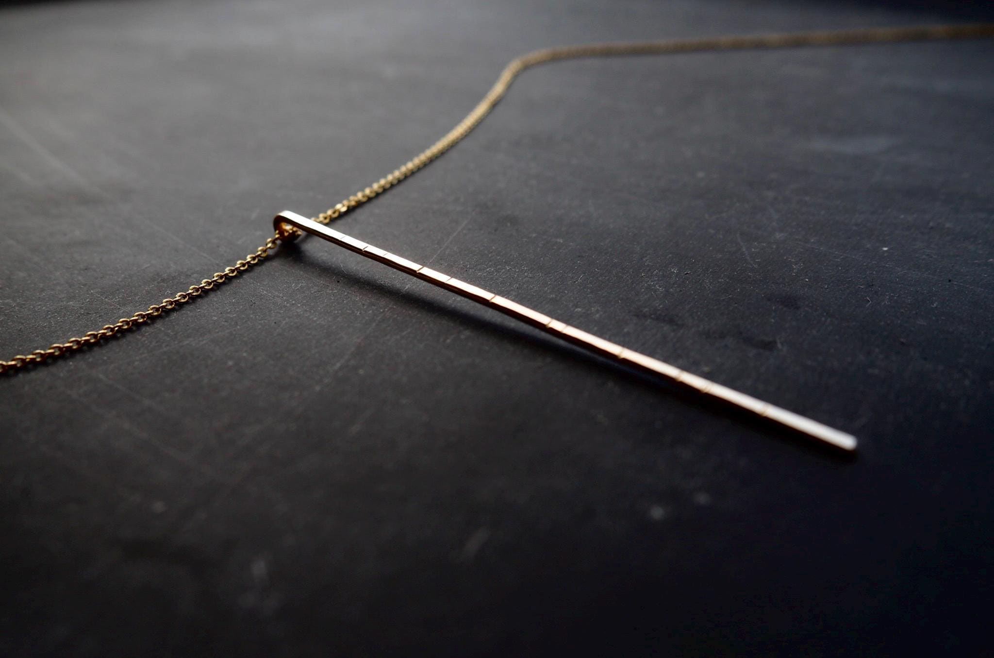 The Timeline Necklace can be marked to celebrate any passage of time. Each pendant is hand pressed to any (reasonable) number of lines you would like to celebrate.